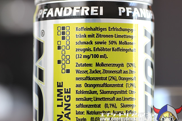 カフェイン80mg、タウリン750mg配合。柑橘系フレーバーの旨味の元としてレモン、ライム、オレンジ果汁も含まれています。