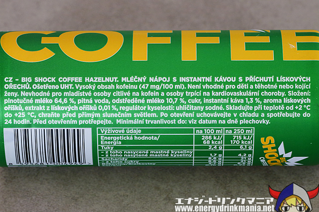 BIG SHOCK COFFEE HAZELNUT COFFEEのエナジー成分