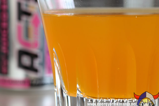 From its pink can pours a bright orange liquid. The aroma is a blend of tropical fruit mix with a hint of chemical scent.