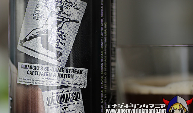On the front of the can, there’s a large serious face of Joe DiMaggio, and my initial reaction was, “What is this?” After taking a closer look, I realized it’s from AriZona’s energy line, so I decided to keep it. However, it seems they couldn’t achieve the cool design like Monster’s Gronk.