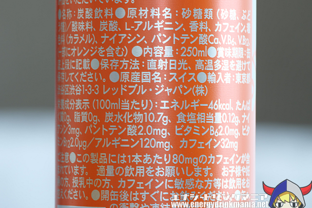 Japanese Red Bull is often thought to come in smaller sizes, but the Edition series is typically 250ml, with the 355ml size only available in North America. The charm of the Edition series is to enjoy its unique flavor in this limited quantity. As the Japanese Orange Edition is a limited release, I recommend securing it early if you enjoy the taste.