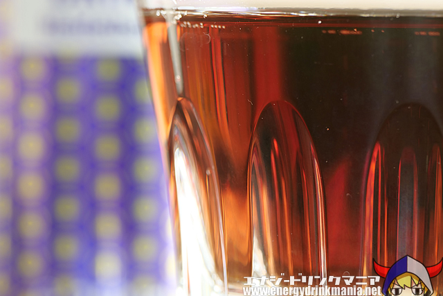 The color of the drink is a reddish-brown, and it doesn't strongly evoke the berry flavor. The aroma is sweet and tangy, reminiscent of blueberry candy.