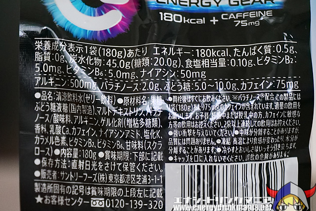 The caffeine amount feels a bit on the lower side. Other energy jelly products released by other companies in the past have generally had a higher caffeine content in relation to their size. (⇒Energy Jelly Review List)