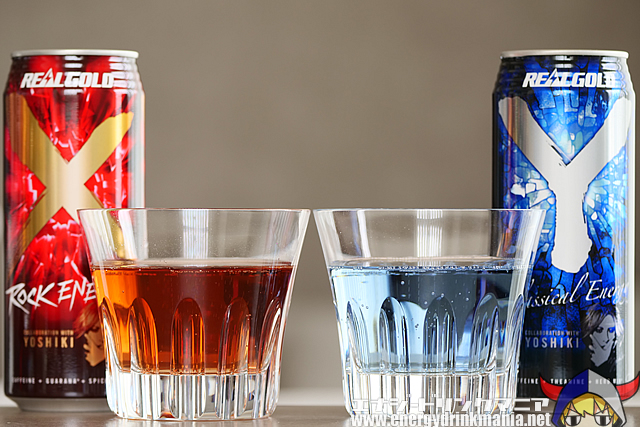 どちらも中身の色が落ち着いた印象でギラギラしていないのが個人的に好きです。もっとコントラストの強い色でもエナジードリンクらしく見えますが、それだと上品さに欠けたり色によってはチープな感じになりがちなので、YOSHIKIの印象とかけ合わせてもこのくらいの色合いは良かったんじゃないかなと。