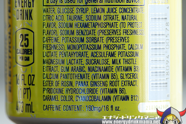 ROCKSTAR RECOVERY LEMONADEのエナジー成分